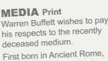 Buffett is a newspaper owner, or rather Berkshire is: he owns the largest slab of The Washington Post Company, which reported a nasty first quarter loss on Friday and the Buffalo News in New York State. He used to own a big stake in ABC Capital Cities, so he knows the media, despite what some might say.