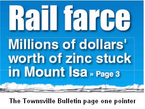 Major rail freight delays – a massive backlog has resulted in freight delays of up to four months for Queensland Rail customers such as Xstrata, leaving millions of dollars in freight going nowhere – Townsville Bulletin