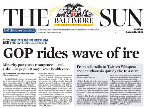 GOP rides wave of ire: Minority party sees resurgence – and risks – in populist anger over health care – Baltimore Sun