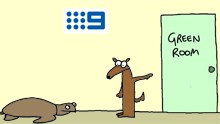 I think the lady Turnbull on one side of the green door and on the other side of it all the other channels logos. We all know what a media freak he/she is and the pooch and the sea turtle where they are. Just love frames one to five. Well done. 🙂 🙂 🙂