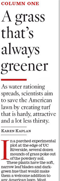 Turf scientists on a quest to engineer a superlawn – The goal: Grass that’s drought-proof, pest-resistant, oh, and a nice shade of green. It’s a tall order, but the need is great as water becomes increasingly scarce – Los Angeles Times