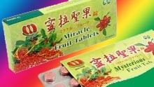 Yes yes yes yes yes! Sold! This wasn’t the usual solar-powered-USB-novelty-keyring the site usually offers: it was the fabled Miracle Fruit — or the tablet form thereof: the widely-hyped West African berry that reportedly plays havoc with your tastebuds, taking your mouth on a magical mystery tour. “Flavour tripping” parties are all the rage Stateside, and $9.95 (plus postage and handling)* later, Crikey was all set to have our very own.