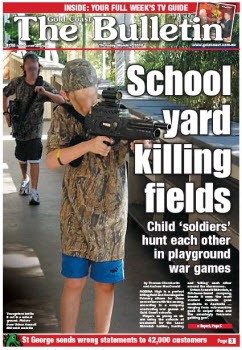 Gold Coast schoolyards are the “perfect killing fields”, according to the Gold Coast Bulletin. If laser guns could kill, that is …