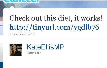 The Minister for Weight Loss? Was Kate Ellis’ Twitter account hacked, or is she really spouting this as serious weight loss advice? Either way, I’d imagine this may garner some coverage as a news story today.