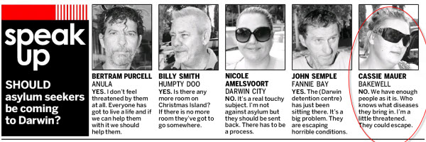 If refugees escape, the plague beginneth. Or so says Cassie Mauer in today’s NT News: