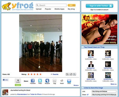 Fielding getting frisky? The thing about uploading your photos to free services like Yfrog is that you never know what advertising they’ll put next to it. As Senator Steve Fielding found out (courtesy of one keen-eyed Twit Sarah):