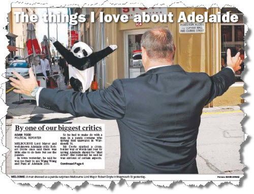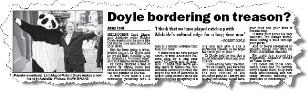 A tale of two papers. It was a classic tale of city vs city in the parochial southern tabloids this morning, as a story about Melbourne Lord Mayor Robert Doyle read quite differently in the Adelaide Advertiser and Herald Sun: