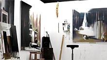 Above: The painter’s studio, from the invitation.