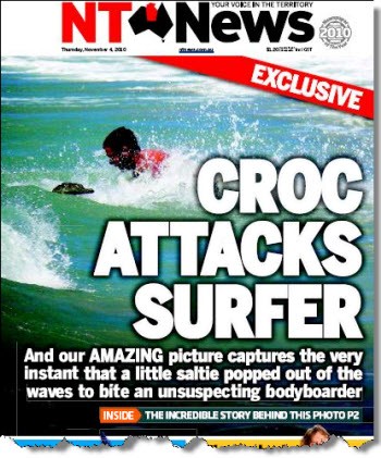 Croc watch #1: Another day, another croc chase from the NT News. But this was a real scoop — photographic evidence of a real live attack…