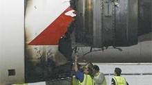 They show that what has been identified as a part of a turbine blade passed through the wing above the No 2 engine (shown above) and lodged a short distance behind the leading edge but in front of a major fuel tank, where there is indirect evidence that it severed some of the wiring that relays instructions to the outermost No 1 engine.