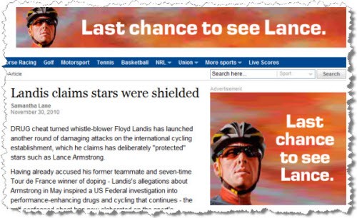 Lance may be on something — but come see him in action. More synchronised ad placement on The Age website…