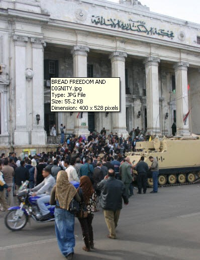 “Bread, freedom and dignity” chanted a group of lawyers demonstrating outside the Alexandria courthouse last night. That’s what most Egyptians want, not chaos.