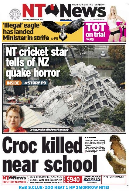 NT News watch. Crocs! Near schools!