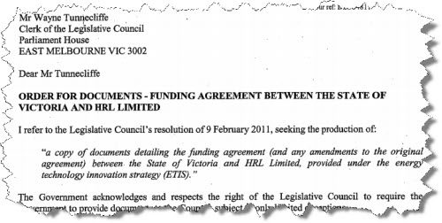 On Wednesday the Ted Baillieu-led Coalition used its majority in the Legislative Council to protect the commercial confidence of a deal to build a HRL-Dual Gas coal-fired plant in the country town of Morwell, worth $150 million dollars of public funding.