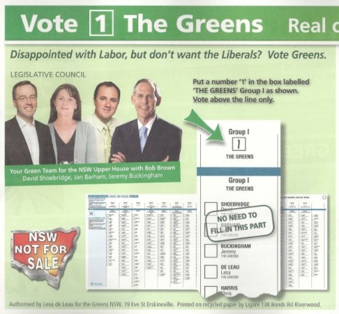 Um, no they didn’t. That is not true. Labor is whinging that the Greens declined to issue preferences in the upper house – as if it’s their responsibility to tell their voters who to preference, rather than their voters’ own bloody choice – but I haven’t seen anyone shameless enough to declare in print that the Greens actually preferenced One Nation.