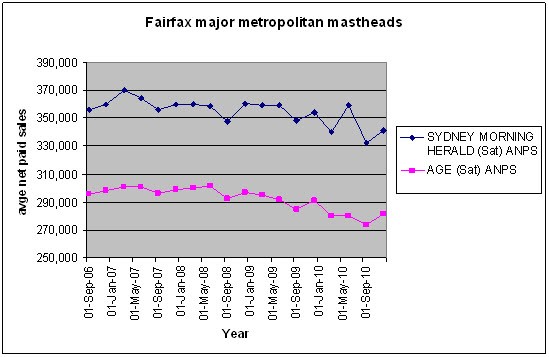 So far, Australia has only had a taste of the dramatic falls in circulation that papers in the US and UK have suffered over the past few years, but there is evidence that in Australia the circulation decline is beginning to increase. Management at Fairfax have allowed this to spook them into repeatedly hacking away at the most important part of their company’s money-making equation: the editorial staff.