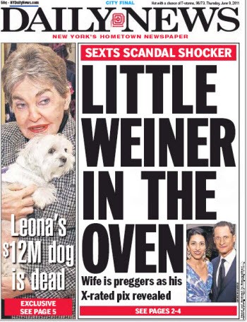 Front page of the day. The sordid Anthony Weiner scandal is the tabloid gift that just keeps on giving …