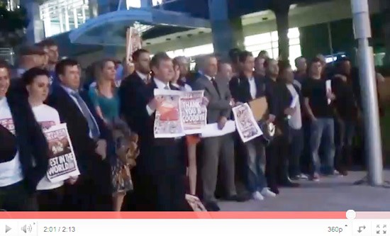 In a moment of varying emotions for News International staff — sad, celebratory and slightly surreal — News of the World editor Colin Myler led his team outside to face the media after completing the newspaper’s final edition.