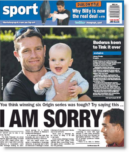 The Brisbane tabloid for its part thinks Mal had every right to be cranky, revealing that “some” have “urged Meninga to counter-attack by launching his own defamation action against cheap shots published in the Sydney press”. In fact, the Courier-Mail reported “explosively” that Meninga had in fact been pre-warned to expect the “Sydney newspaper low-blow!”.