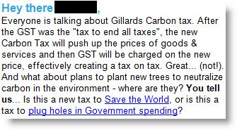 Betting on strident carbon views. They’re funsters at online betting site Sportsbet.com.au, aren’t they? Last Thursday subscribers were treated to a bizarre lecture on the defects of the carbon tax and the Gillard government via its weekly “Inside News and Views” email. Readers were told the tax would “push up the prices of goods & services”, creating a “tax on a tax” — “Great… (not!)”.