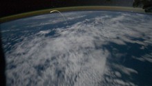 Above the horizon the signs of the dawn twilight approaching Florida can be discerned.