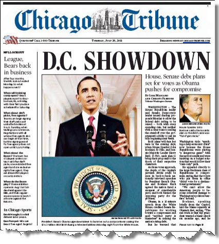 Front page of the day. The clock is ticking on a crucial debt deal in the US …