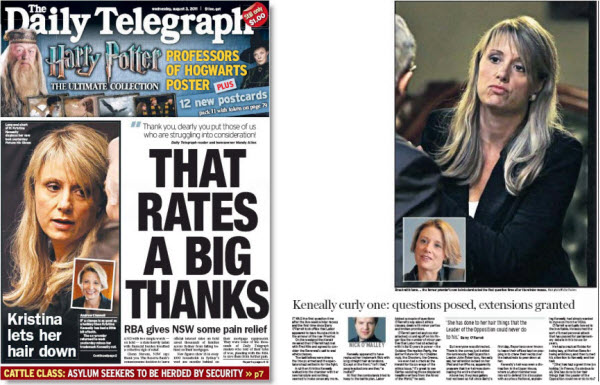 Kristina Keneally’s hair, in the stead of actual political news. Guilty: the entire NSW Press Gallery, without exception.
