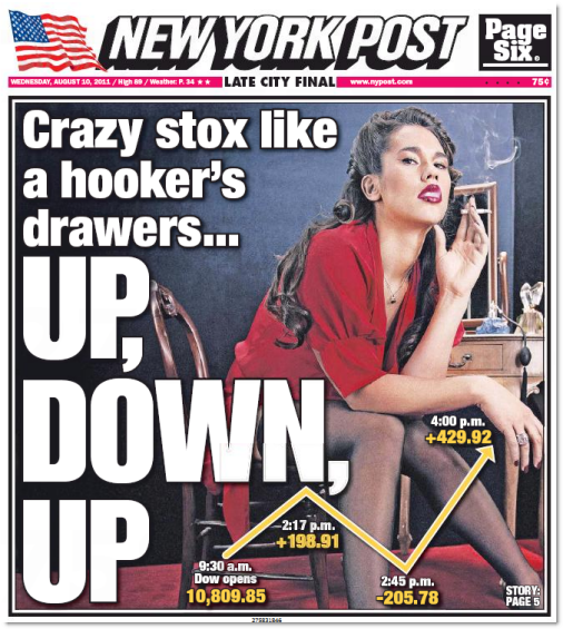 “Shares in public media companies are taking a disproportionate beating in the stock market’s recent tumult. The overall world of marketers, media companies and agency owners has actually been holding steady with the general market, even faring a little bit better, as the last month has delivered increasingly volatile swings. ” — Advertising Age