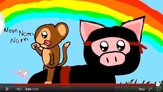Last October, Crikey’s Video of the Day Baby Monkey Going Backwards on a Pig became an instant hit in the office. Now, all these months later, we receive a striking reminder — via this pastiche of art pieces — that we weren’t the only people who fell in love with the pig and the primate. Not by a long shot …