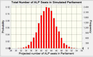The ALP is rock solid up to winning at least 38 seats, before the distribution starts falling away.