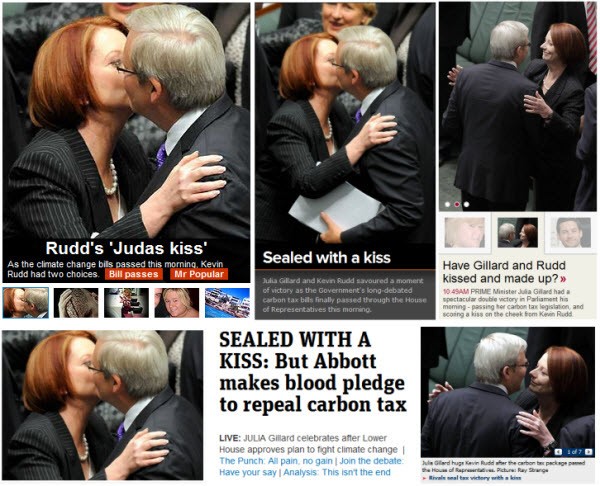 Then it was Labor kisses all round, first Gillard and Combet, then Gillard and Wayne Swan and finally Gillard and … Kevin Rudd, who yesterday had gleefully used a question from Julie Bishop on foreign affairs to remind Australians what they were missing out on.