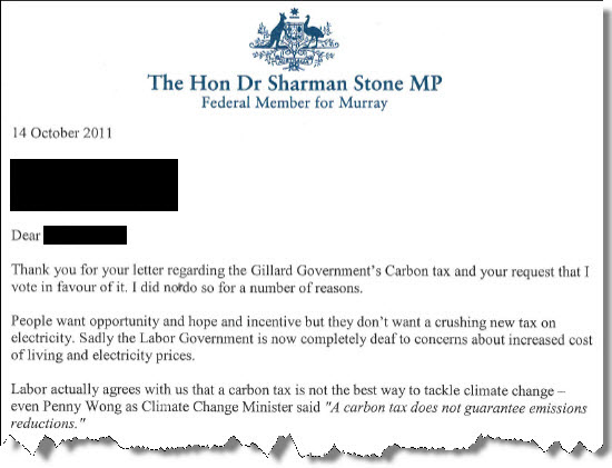 Stone-walling on carbon tax. A Crikey reader has dropped us this letter from Coalition MP Sharman Stone. No surprises that Stone isn’t a fan of the carbon tax and believes her party’s Direct Action plan is a winner, but her comments on the local Heinz manufacturing plant raised the eyebrows of the recipient: “We have already seen local food factories like Heinz at Girgarre pack there [sic] bags and head off to New Zealand where this is a flat 10$ per tonne Carbon tax and stacks of exemptions.” We’re not sure the carbon tax — either Australia’s proposed scheme or New Zealand’s existing one — had much to do with that move …