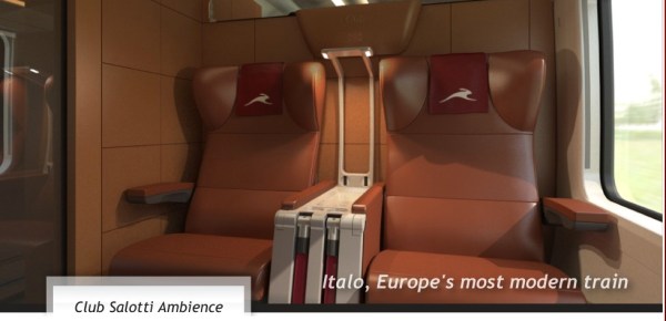 If the news that Italy is to get its fleet of candy red high speed trains part owned by the head of Ferrari next year isn’t enough to excite those who would rather rail than fly between Melbourne and Sydney, get an eye full of the interiors.