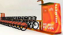 The Government now subsidises the cost of helmets and makes them available at hotels and a range of outlets near MBS stations for $5 (in Brisbane, the City Council made 400 free helmets available on an honesty basis). Unfortunately helmets are mostly not available at the point of hire. Some observers point out that’s unfriendly to tourists, but MBS isn’t pitched at tourists – it’s explicitly aimed directly at inner city workers and residents.