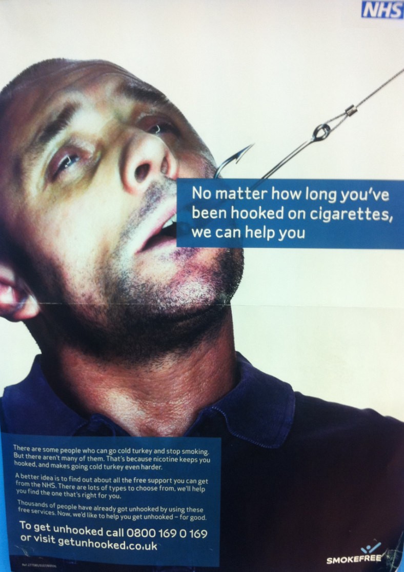 Another poster on display in the nation’s waiting rooms says: “There are some people who can go cold turkey and stop smoking. But there aren’t many of them.” (See picture at bottom of this post.)