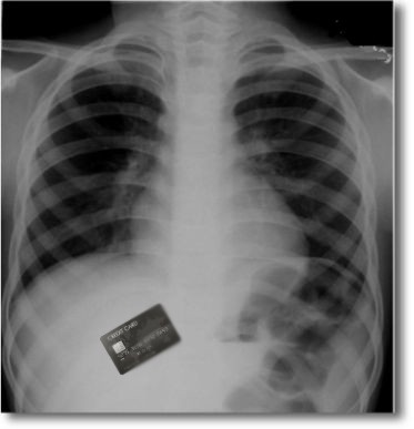 Thomson’s credit card location. We don’t want to kick a man in his sick bed. But this image of Craig Thompson’s X-ray has been doing the rounds. So that’s what happened to it …