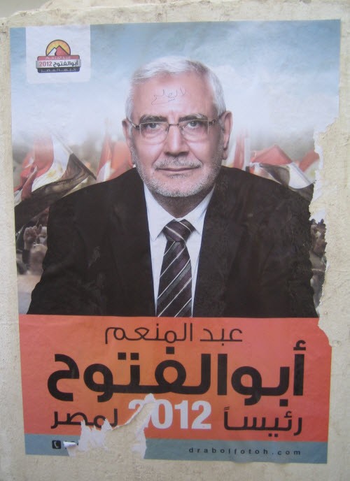 A poster of candidate Moneim Aboul Fotouh on a wall in Cairo