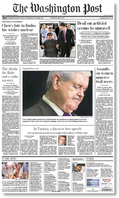 Front page of the day. The Washington Post covers Newt Gringrich officially bowing out of the Republican presidential candidate race: