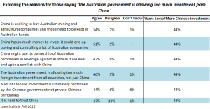 A clear majority of Australians believe that our government is allowing too much investment from China. When explored further and those 56% were asked an additional set of questions, this is what we got:(click to expand)