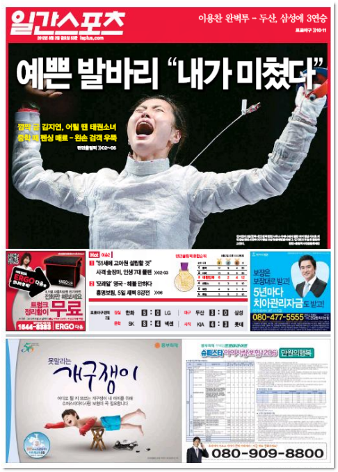 Front page of the day. More Olympics front page action as South Korean sports newspaper Ilgan Sports leads today with the anguished pictorial of distraught fencer Shin A Lam, who was controversially denied her chance to participate in the gold medal match: