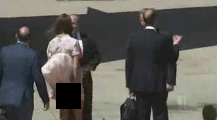 Royal derriere. Some eagle-eyed media watchers may have seen fleeting TV footage of Princess Kate’s dress flying up when she landed in Brisbane earlier this week — revealing a hint of the royal derriere. We caught a brief eyeful on ABC News as the airport gusts caught Kate’s lightweight floral frock, but the images didn’t seem to be widely used (an example of media restraint can be seen here). Sensitivity over photos of Kate’s breasts being published in Europe, perhaps?