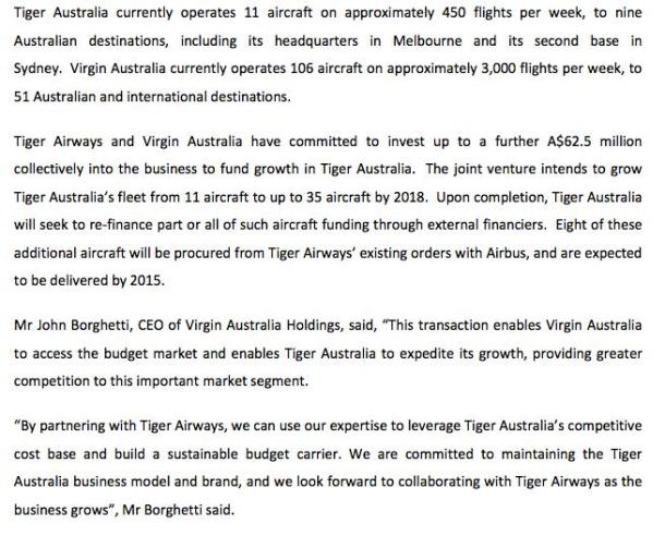 The Tiger branding will continue to apply to the Tiger Australia operation.