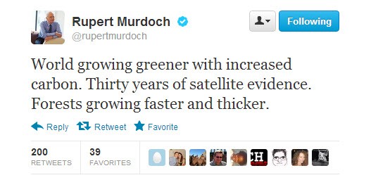 This is the conclusion on climate change from media baron Rupert Murdoch, as he tweeted yesterday. Crikey asked Dr Chris Weston from the Department of Forest and Ecosystem Science at the University of Melbourne to apply the Get Fact blowtorch to the tweets. Does Rupert’s science stack up?