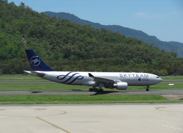 Yesterday it lost considerable PR impact in landing its first ever flight in Cairns by turning up in Sky Team livery, not the distinctive and imposing China Southern branding.