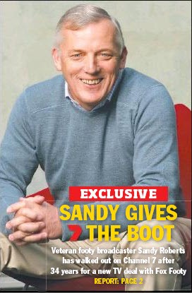The Sandy scoop that wasn’t. Melbourne’s Herald Sun splashed on its front page yesterday with a yarn that stunned sport lovers: Seven veteran Sandy Roberts was walking out on Channel Seven after 34 years. The story contained no on-the-record quotes, but left no room for doubt: Roberts had been poached by Fox Footy to call games and host programs.
