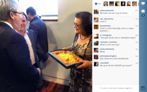 I was on a plane sitting just behind KRudd in the Kevin07 days. He was last on board with a lackey. Thing I remember most was that KRudd was cool as a cucumber sitting peacefully however the lackey was sweating like a you-know-what and frantically working on papers in a large portfolio case. Don’t know the ins & outs but the lackey looked like he was about to have a stroke. I would not like to be keeping company with KRudd.