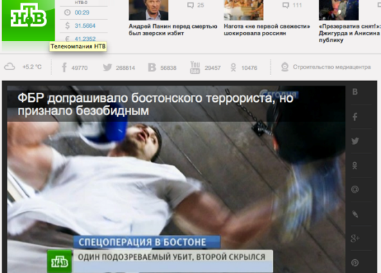 Russian state television site NTV with the headline: “FBI investigated Boston terrorist, but found him harmless”