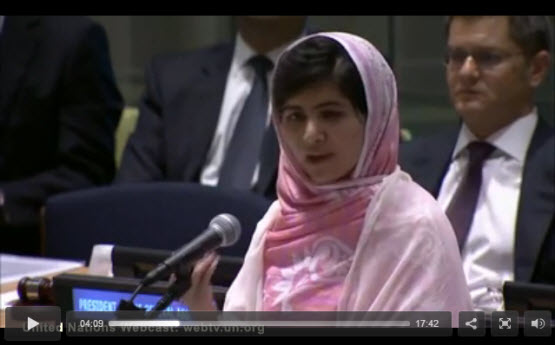 Video of the day. Malala Yousafzai — Crikey‘s very own Person of the Year — spoke movingly at the United Nations Youth Assembly on her 16th birthday over the weekend about the horrors of Pakistan (she was shot by the Taliban for campaigning on education rights for girls) and hope for a better future …