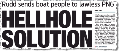 PNG’s a hellhole, Nauru’s A-OK. Daily Telegraph political reporter Gemma Jones was outraged by Prime Minister Kevin Rudd’s PNG solution for asylum seekers. The Tele splashed its front page on July 20 with the headline “Hellhole solution”, and Jones’ piece begins: “Boat people expecting a new life in Australia will instead be sent to crime-ridden Papua New Guinea …”