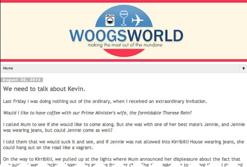 So Mrs Woog headed off, had a great visit (with her Mum and her Mum’s best friend), but had to leave early for the school pick up. Could she return for an interview? Of course. Do come again. (There was an election in the offing, after all.) And so Mrs Woog did just that and the encounter was captured by the PM’s office — on an iPhone! They edited the footage and sent it back.